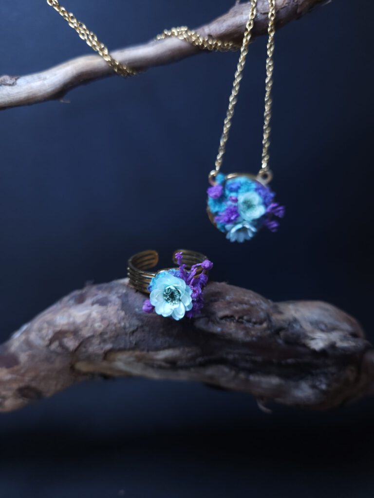Echte Blumen, bewahrt in zeitlosem Schmuck.Jedes Stück ist ein sorgfältig gefertigtes Unikat.