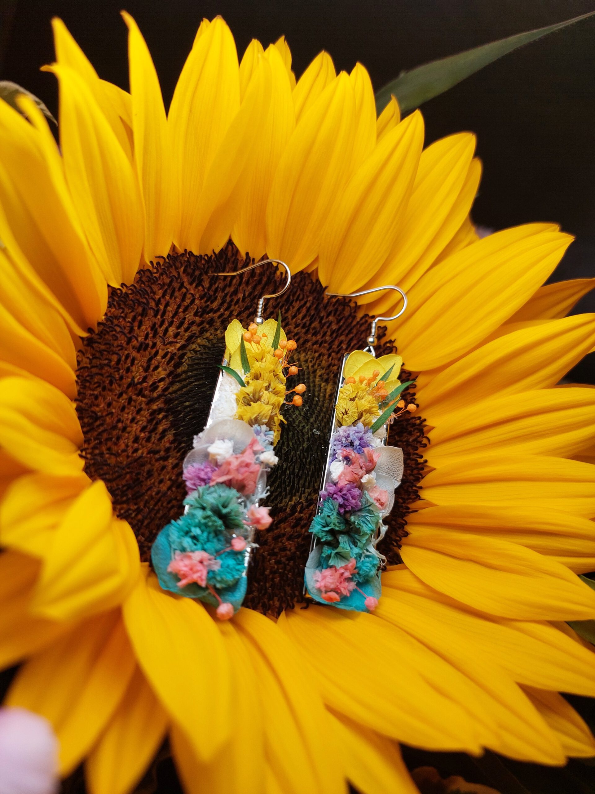 Farbenfroh, zart und voller Leichtigkeit – die Floral Dreams Ohrringe vereinen echte Blüten in einer harmonischen, bunten Komposition.