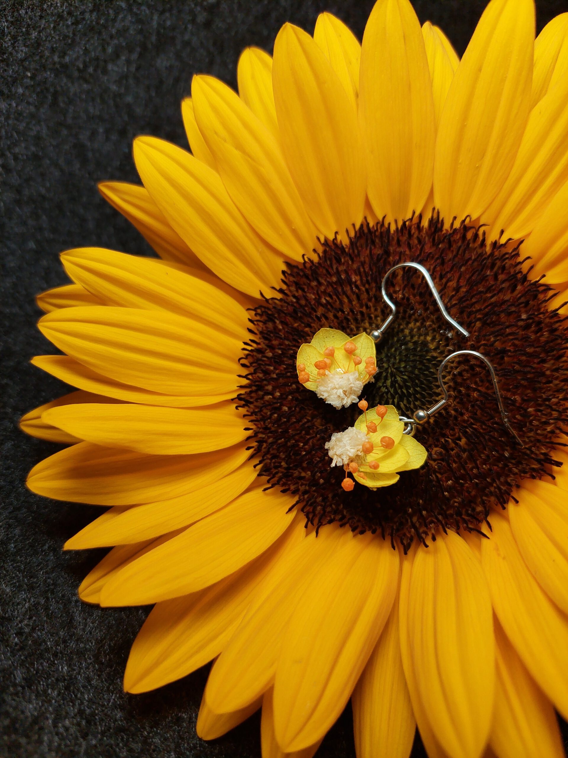 Diese zarten Ohrringe werden von Hand mit viel Liebe zum Detail gefertigt und sind echte Unikate. Die warmen Gelb- und Orangetöne der sorgfältig getrockneten Blüten verleihen ihnen eine natürliche, sonnige Ausstrahlung. Durch ihr filigranes Design und die sehr kleine, elegante Form wirken sie besonders edel und unaufdringlich – ideal als feines Geschenk oder als dein persönliches Lieblingsstück.